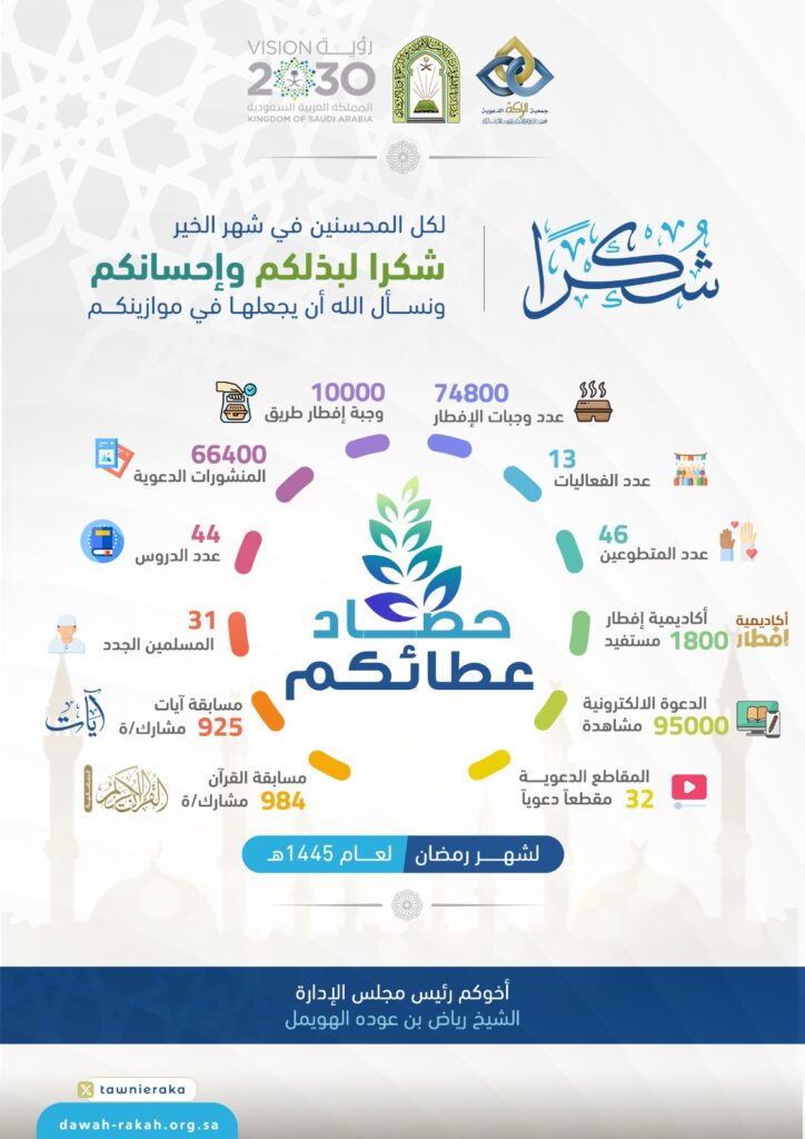 ·عدد وجبات الافطار خلال شهر رمضان : 74800 وجبة